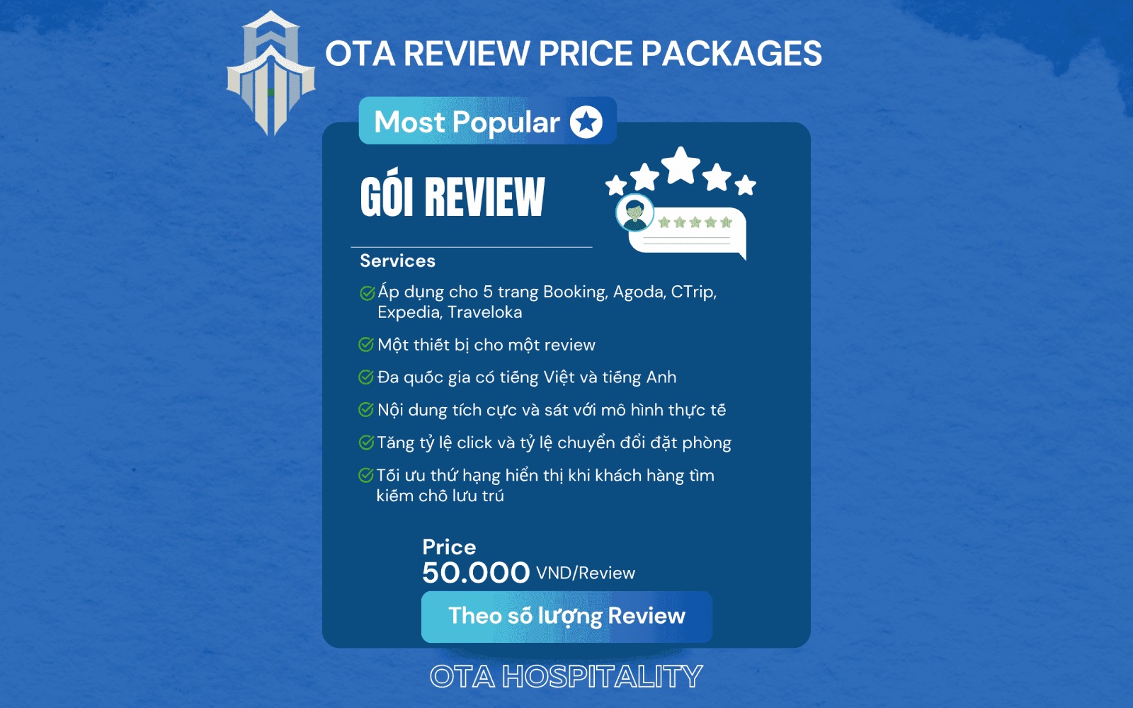 - Chạy review chất lượng cao trên 1 hoặc nhiều nền tảng OTA (Booking.com, Agoda, Airbnb…) theo kế hoạch đã thống nhất.