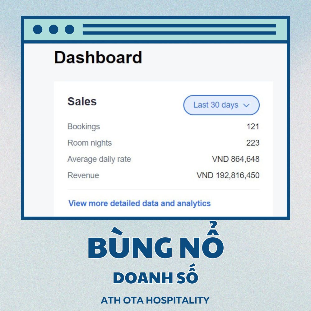 Tối ưu OTA khách sạn là cách nhanh nhất để tăng hiển thị và tăng tỉ lệ đặt phòng trên các nền tảng như Booking.com, Agoda, Expedia, Trip.com. Nếu hồ sơ của bạn còn sơ sài, ảnh chưa đẹp, tiêu đề và mô tả chưa thuyết phục, thứ hạng sẽ thấp và khách khó nhìn thấy khách sạn. ATH OTA Hospitality cung cấp dịch vụ setup & tối ưu OTA trọn gói giúp hồ sơ đẹp hơn, xếp hạng cao hơn và booking về đều theo tuần.